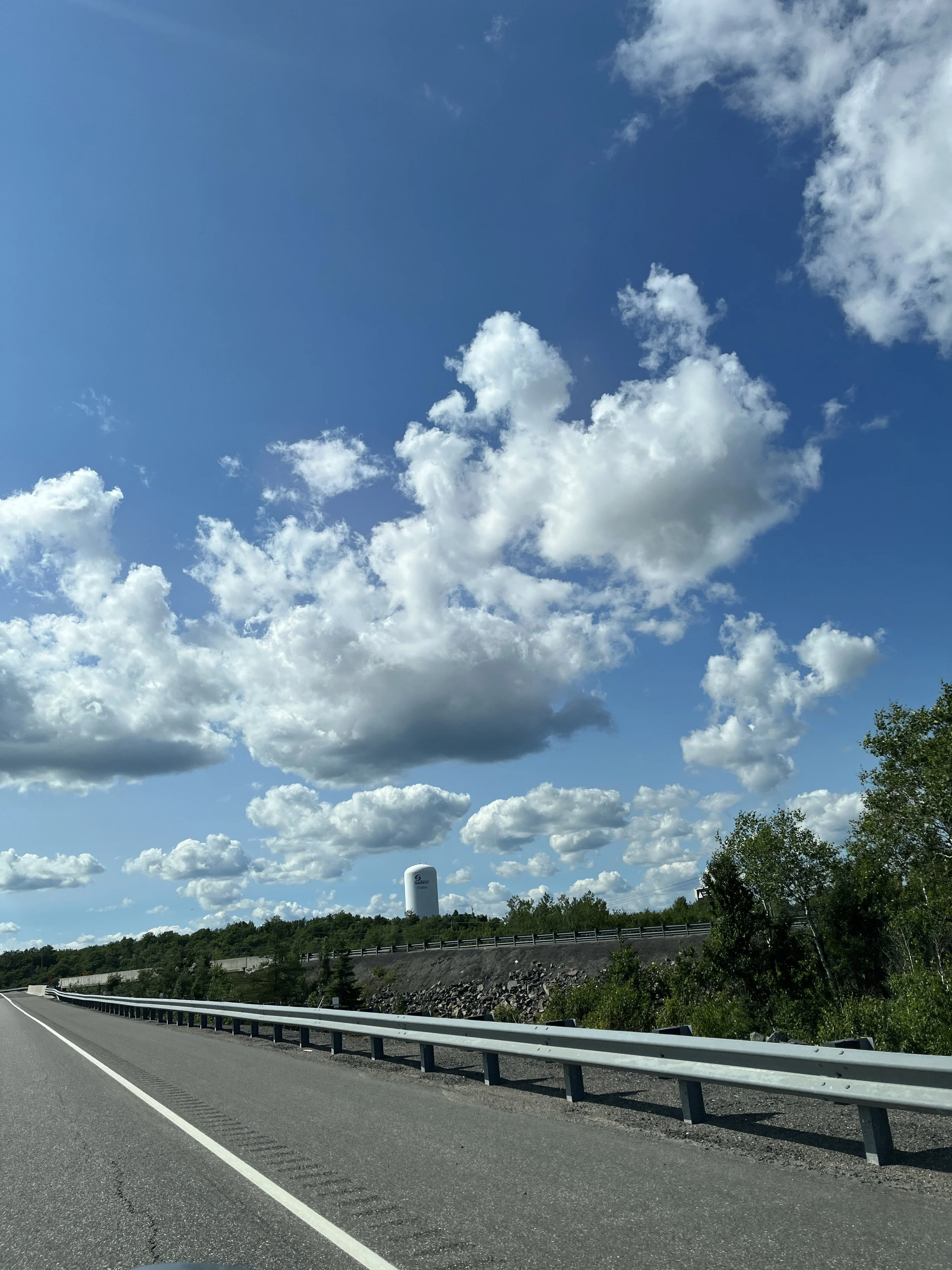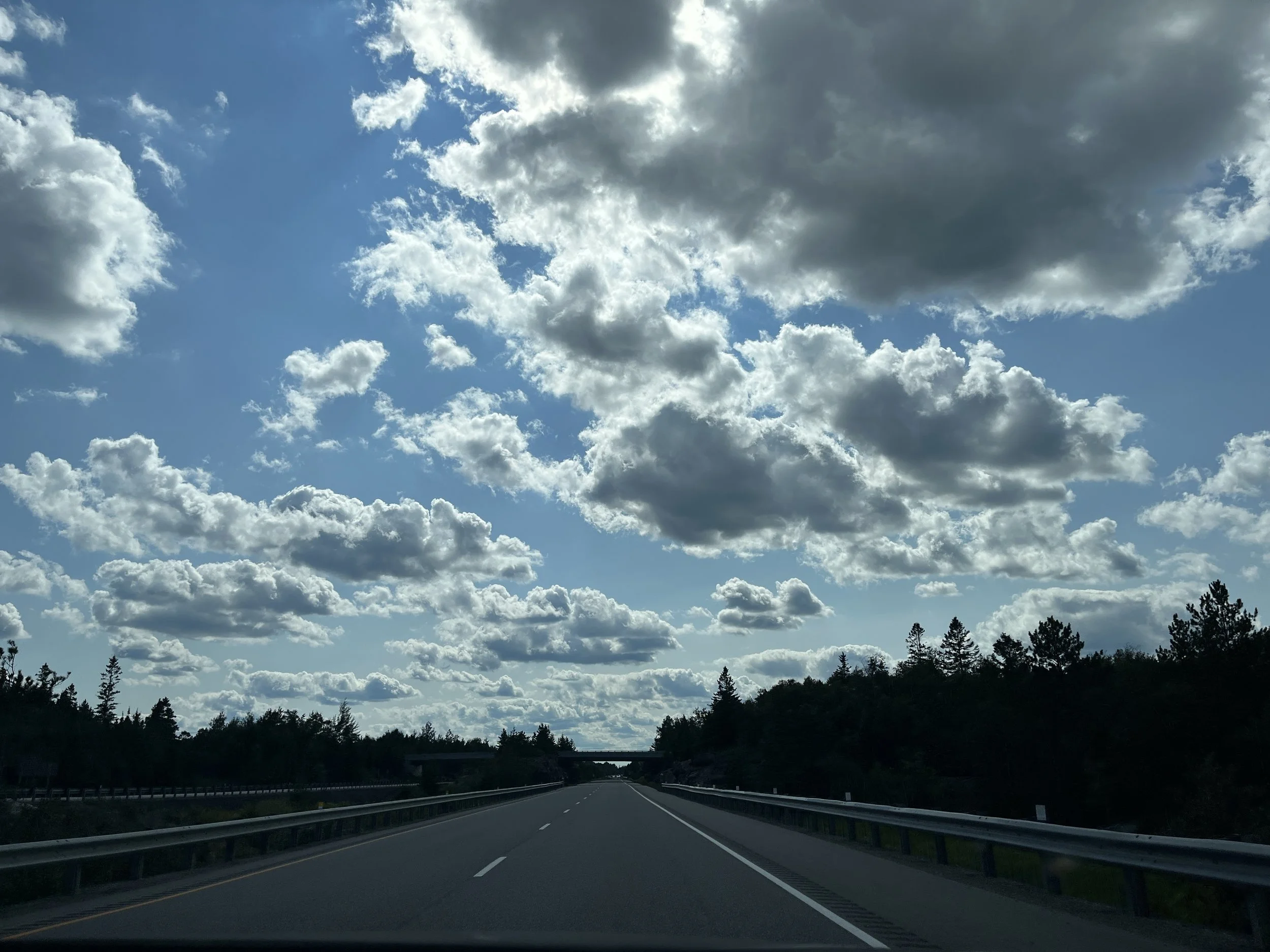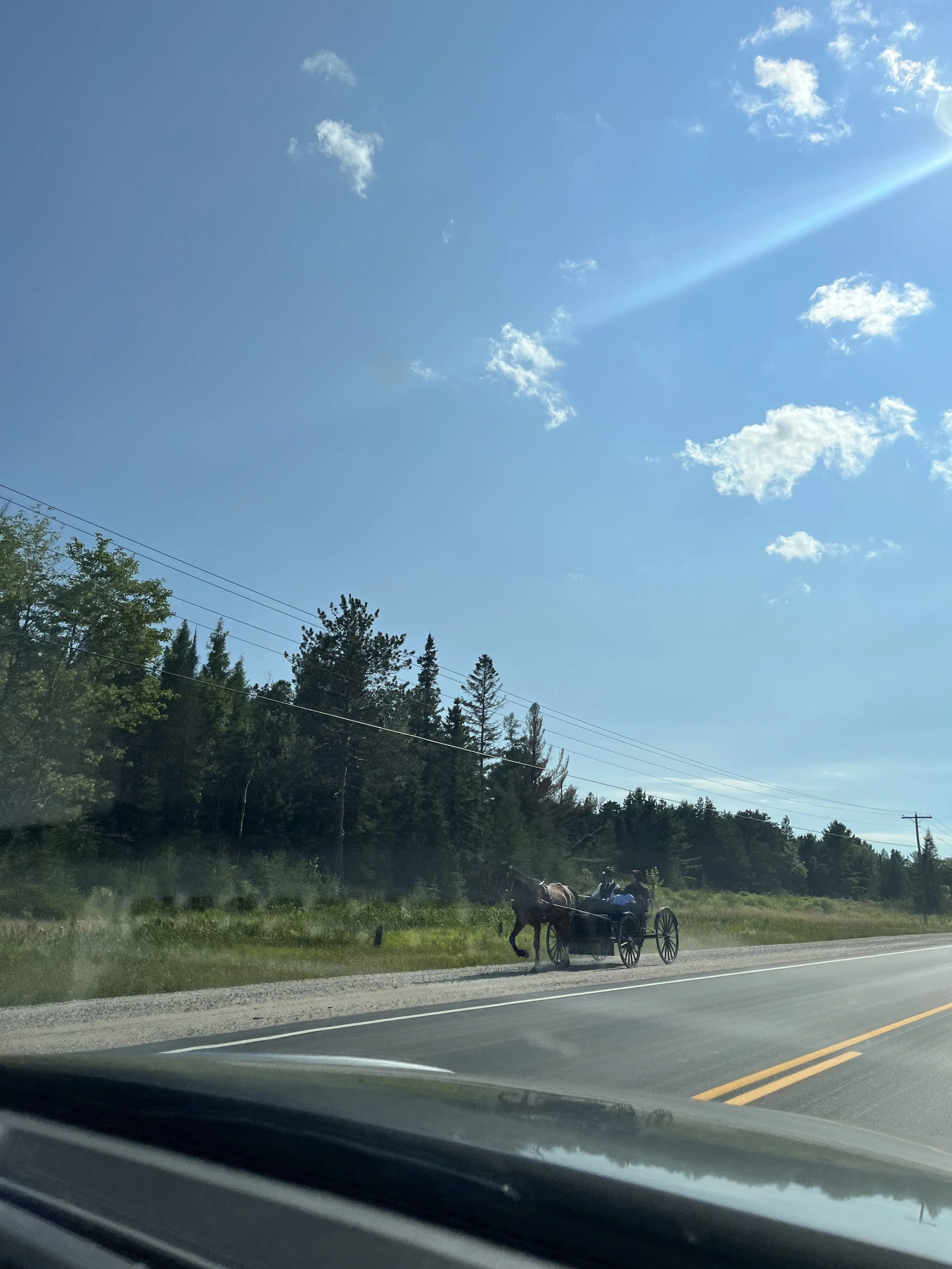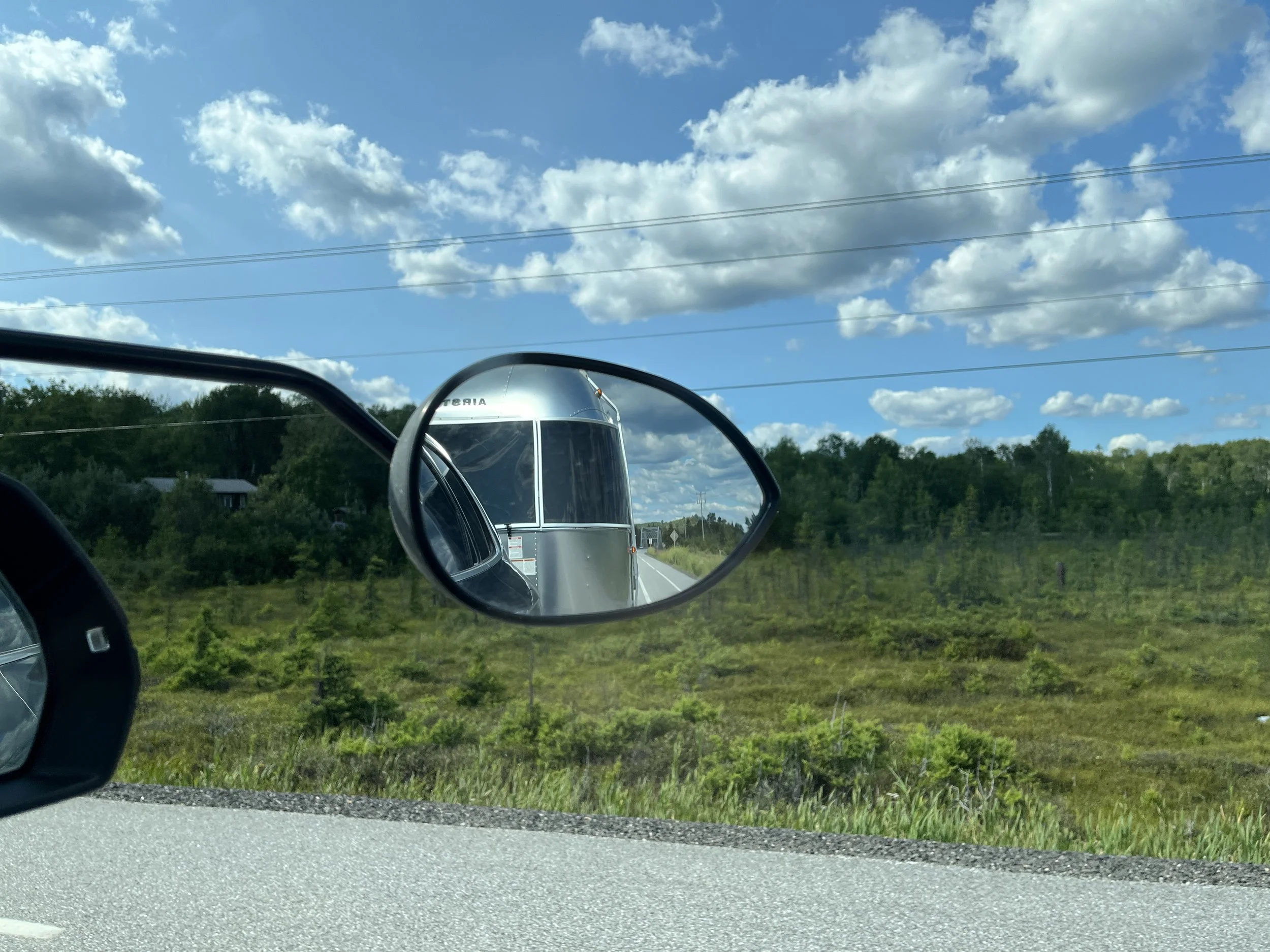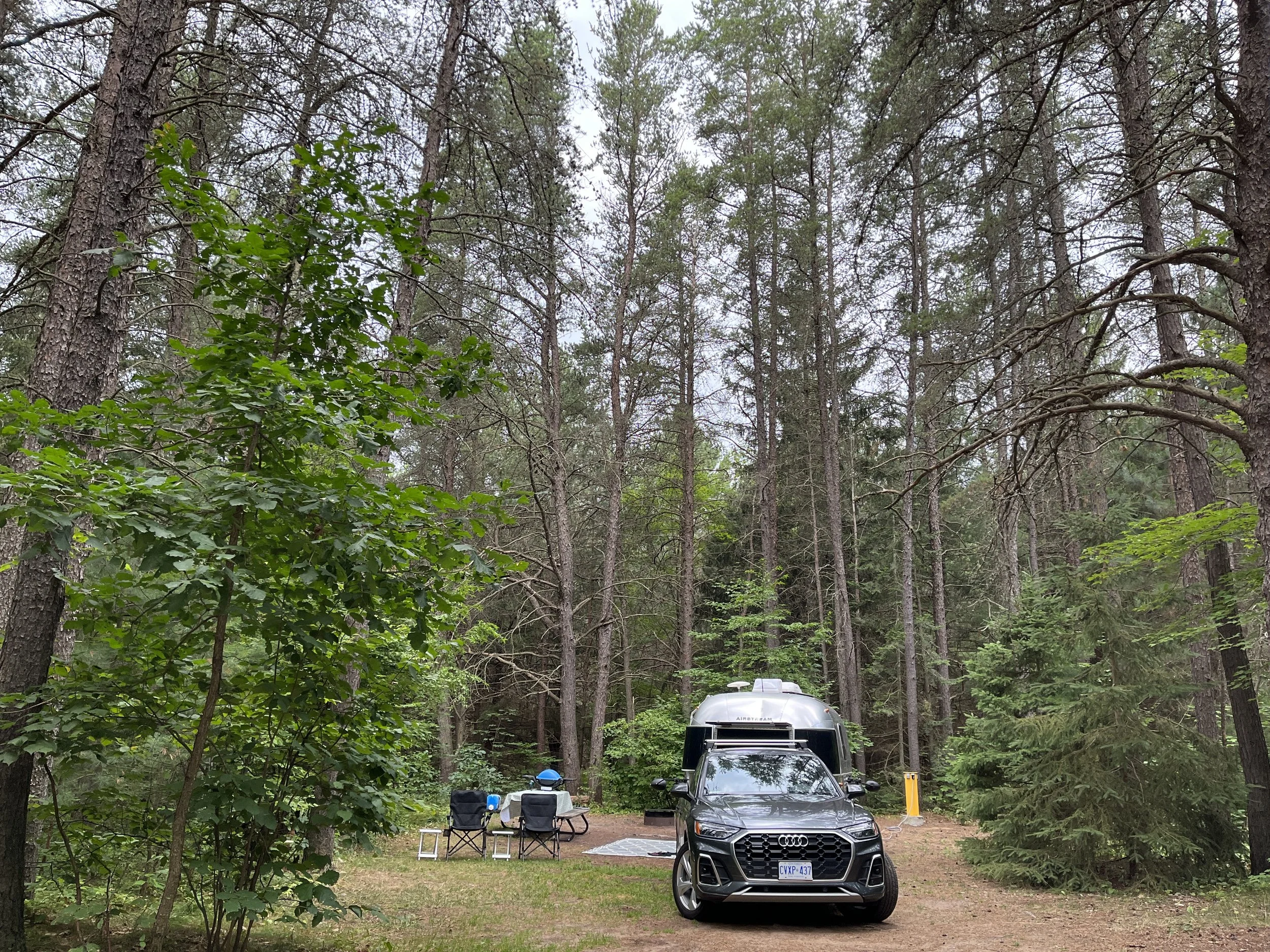 We left Samuel du Champlain just before checkout time and by then it was pretty hot out (29 degrees C), so the AC in the car felt great. We drove via the bypass instead of travelling through Sudbury as we normally do - the road past Sudbury was newly paved and so smooth. Getting into Mennonite country, we saw a horse and buggy and then another Airstream (our first) being towed by a white BMW, just before we passed Espanola. We had a beautiful afternoon for driving.