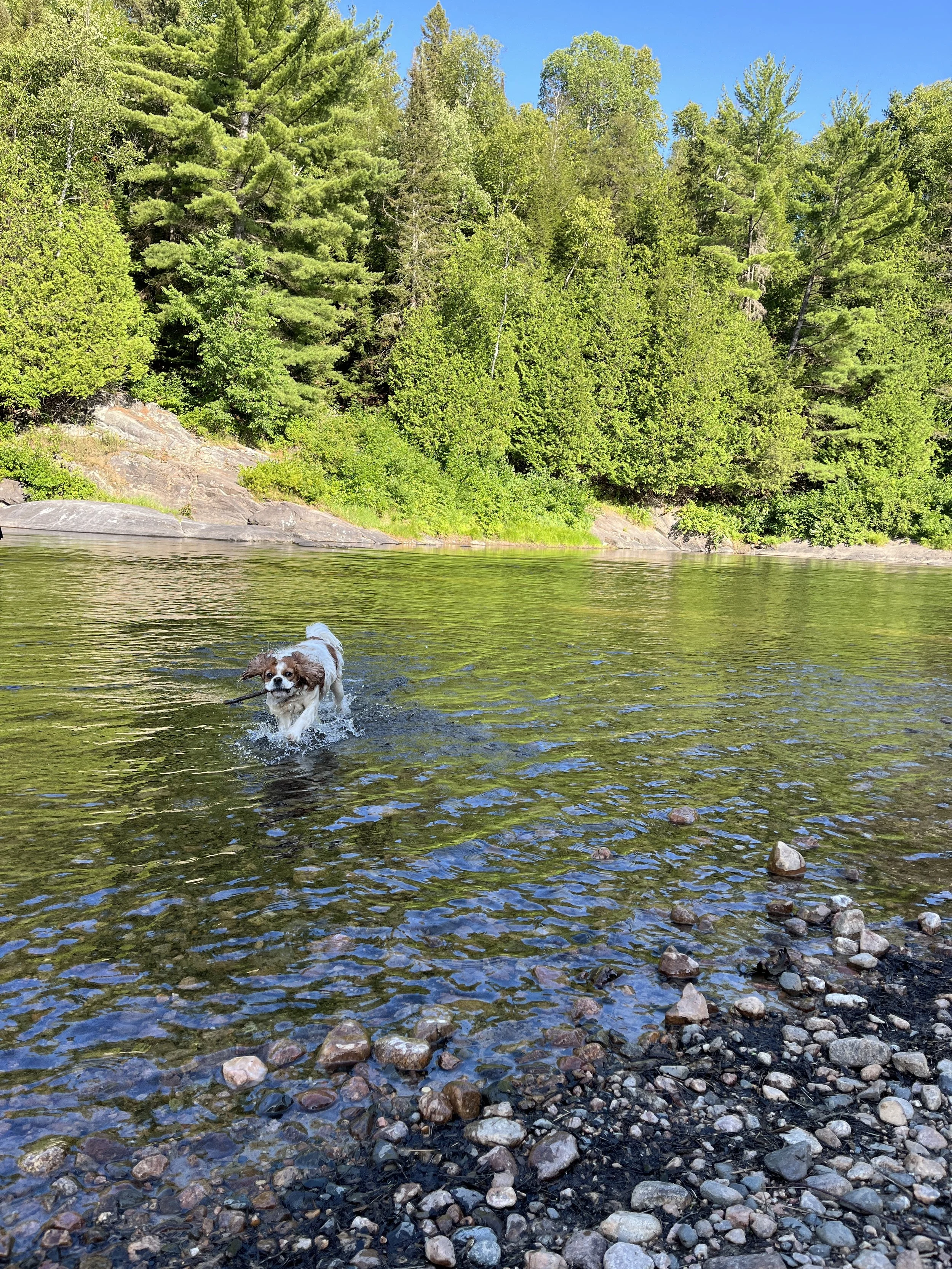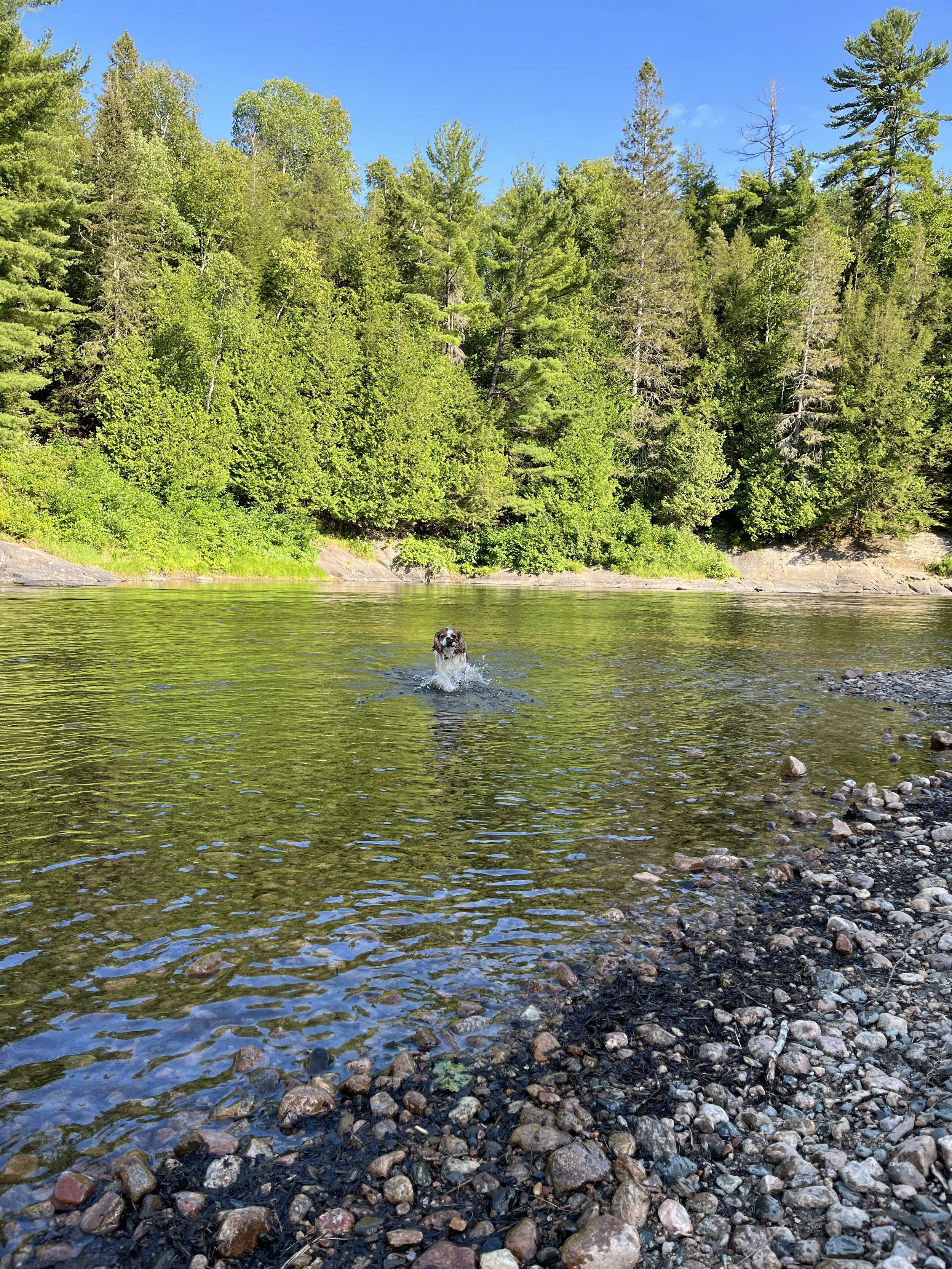 We arrived at Chutes Provincial Park right around dinner time, checked in (I finally bought one of the Ontario parks puzzles), dumped our tanks and made our way to site 78. It’s smaller than where we stayed on site 75 in 2020, but still cute. It’s also right beside a path (which is why it’s listed as not private) but that was ok with us. Our only issue is that Daisy barks at people who pass by sometimes. We’ve been tiring her out, so she didn’t bark at everyone, which was good as it’s a well used pathway.