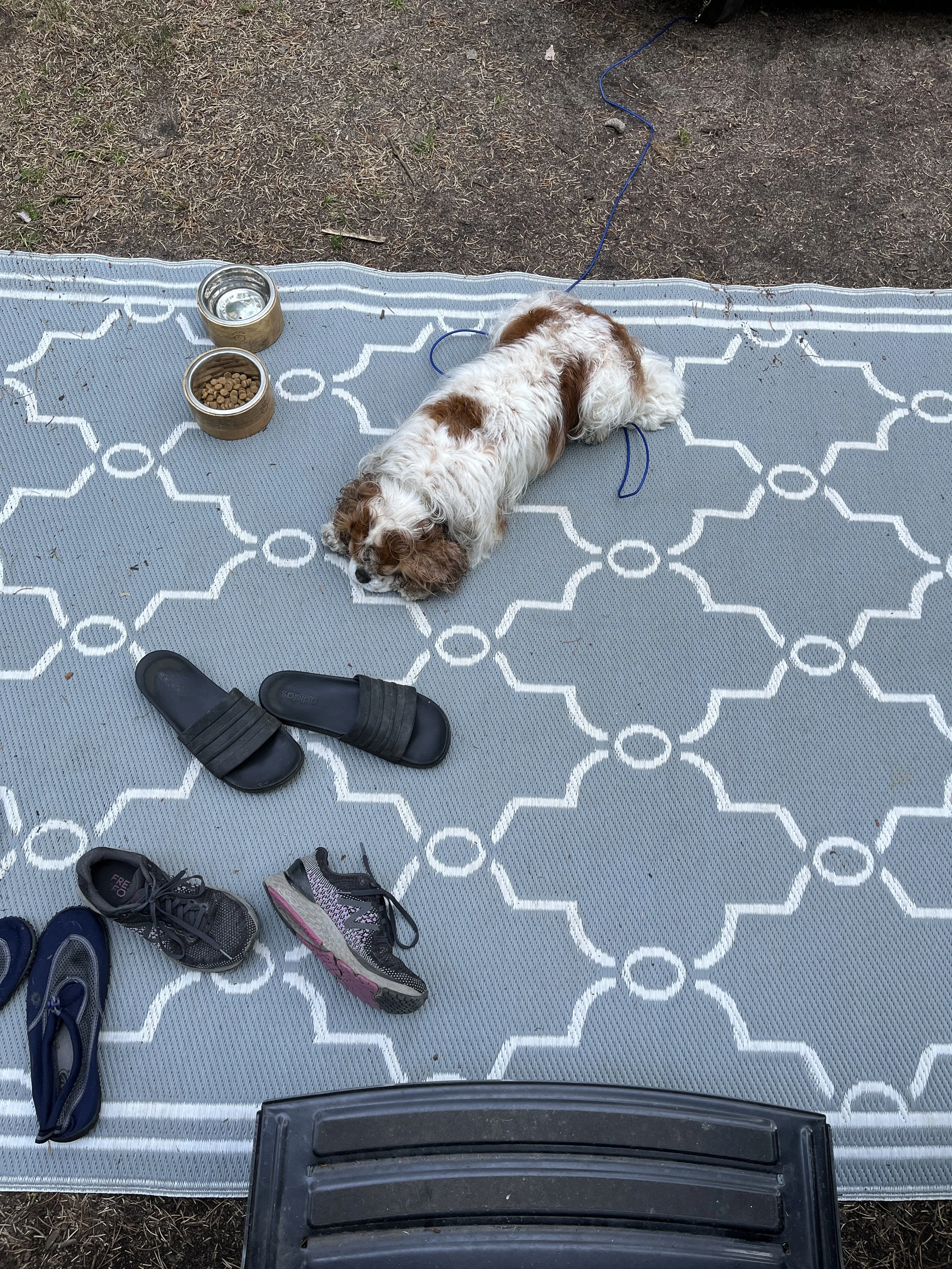 This was an electric site so we plugged in and took the opportunity to use our air conditioning. We find it’s always much hotter when we don’t have a site by the water. We didn’t run it for long, just enough to cool us down for the night.