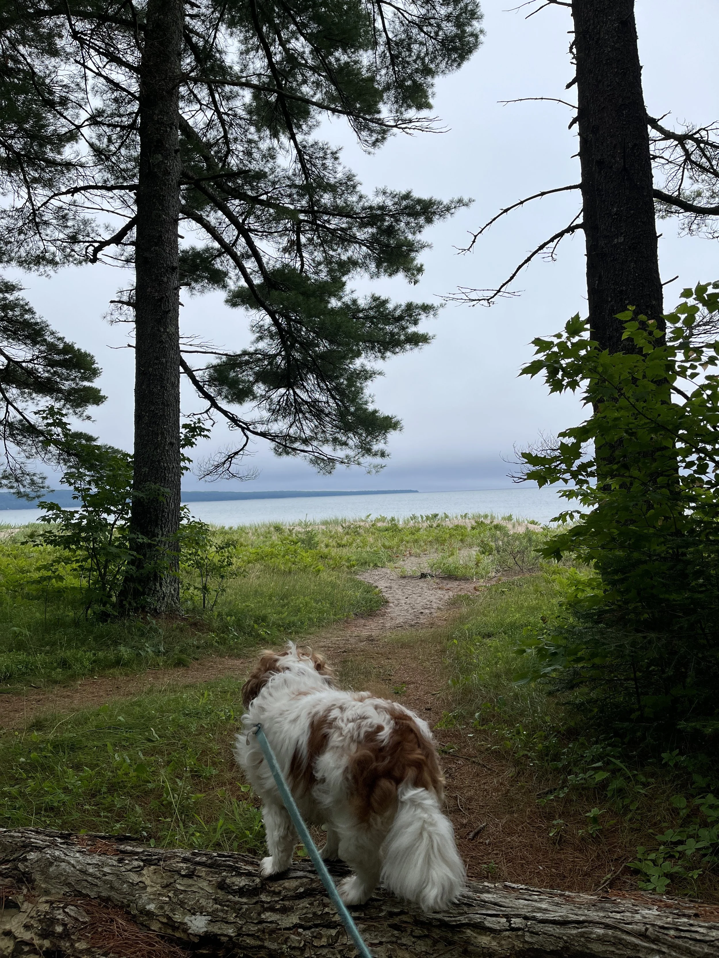 We only had a few more km to drive and we were at Pancake Bay. We pulled in and the temperature had dropped! It was getting chilly. We quickly set up and I took Daisy for a walk. We walked all the way to the end of the park road and back – over 3 km. Our site was close to the dog beach, but we didn’t go there as it was pretty cold out.