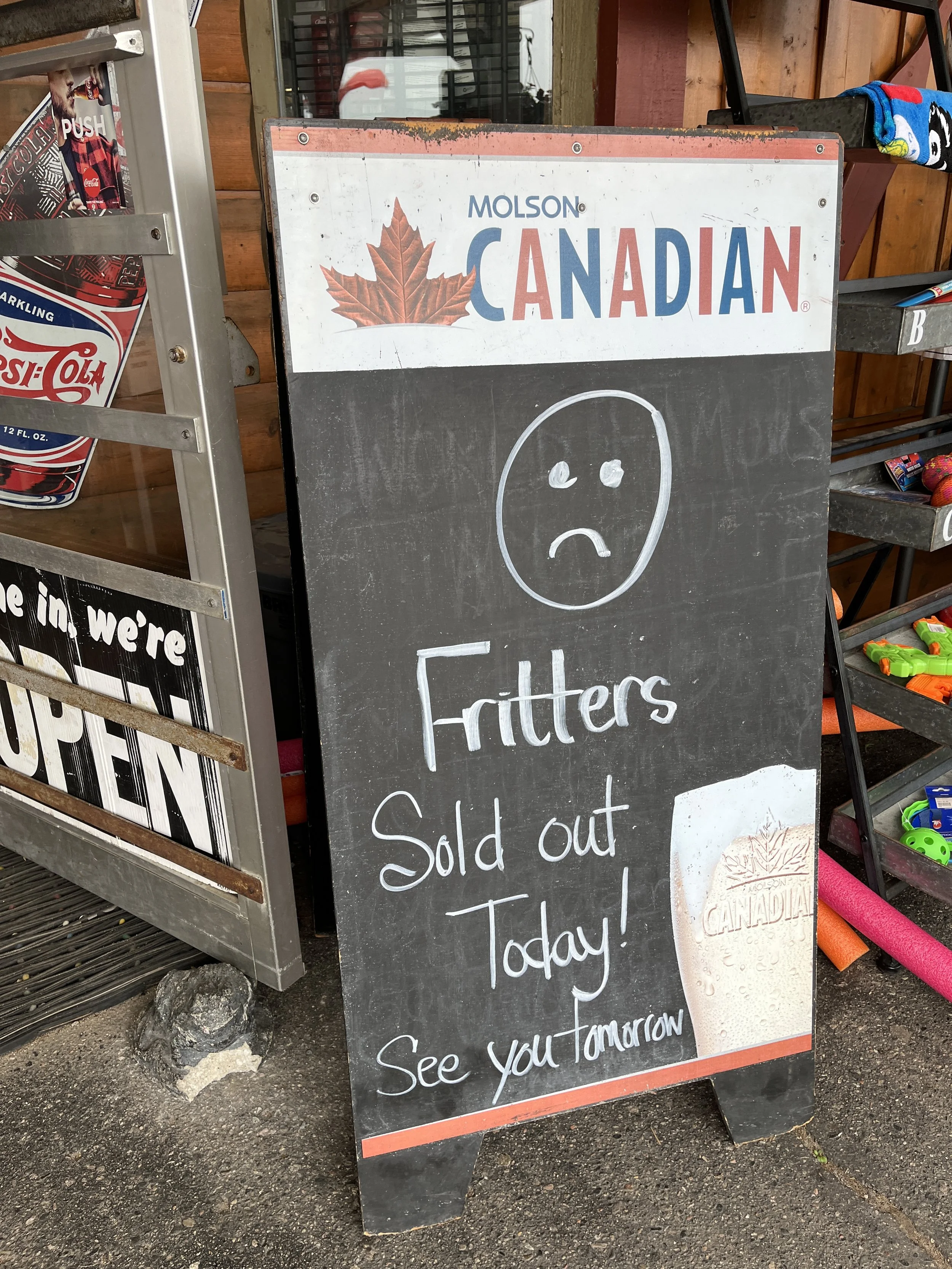 Our third time at Pancake Bay without having an apple fritter seemed to be just wrong. So, we backtracked our route a tiny bit to pick up fresh apple fritters and ended up getting breakfast sandwiches also. They were all delicious.