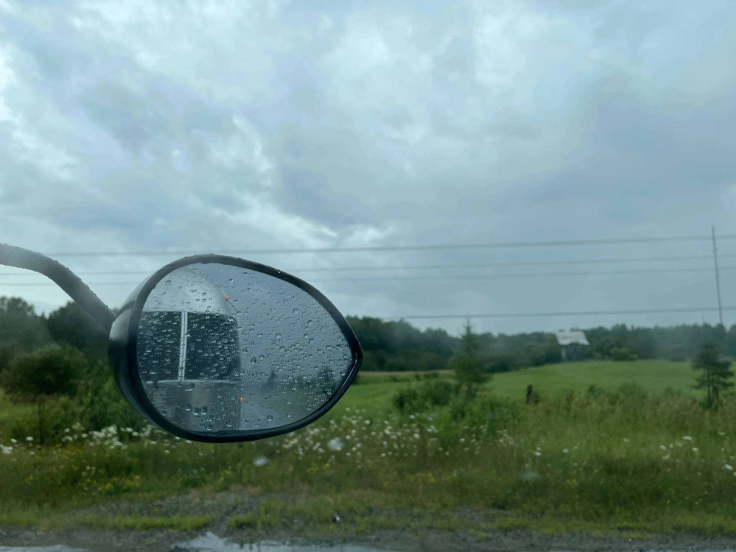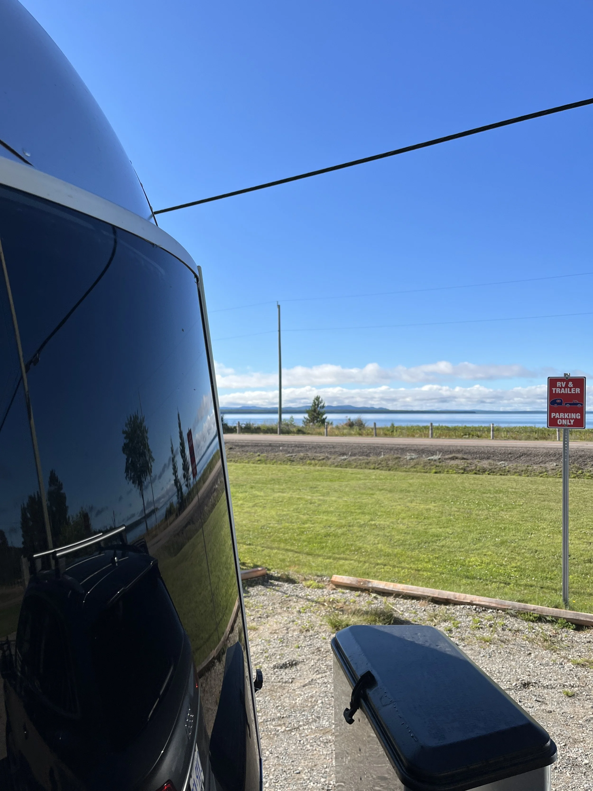 By the time we stopped at Voyageur’s Restaurant (nearly 5 pm!) to get some apple fritters, they were sold out for the day. Darn. We checked out the gift shop and bought some muffins instead. Just after we pulled out, our car told us that our left signal/light on the trailer was out. Not good! We pulled over at the Esso a few kms up the road and checked it out. Sure enough, it wasn’t working. Not knowing what we should do, we decided to just unplug and plug back in first – thankfully, that seemed to solve it! Yippee!