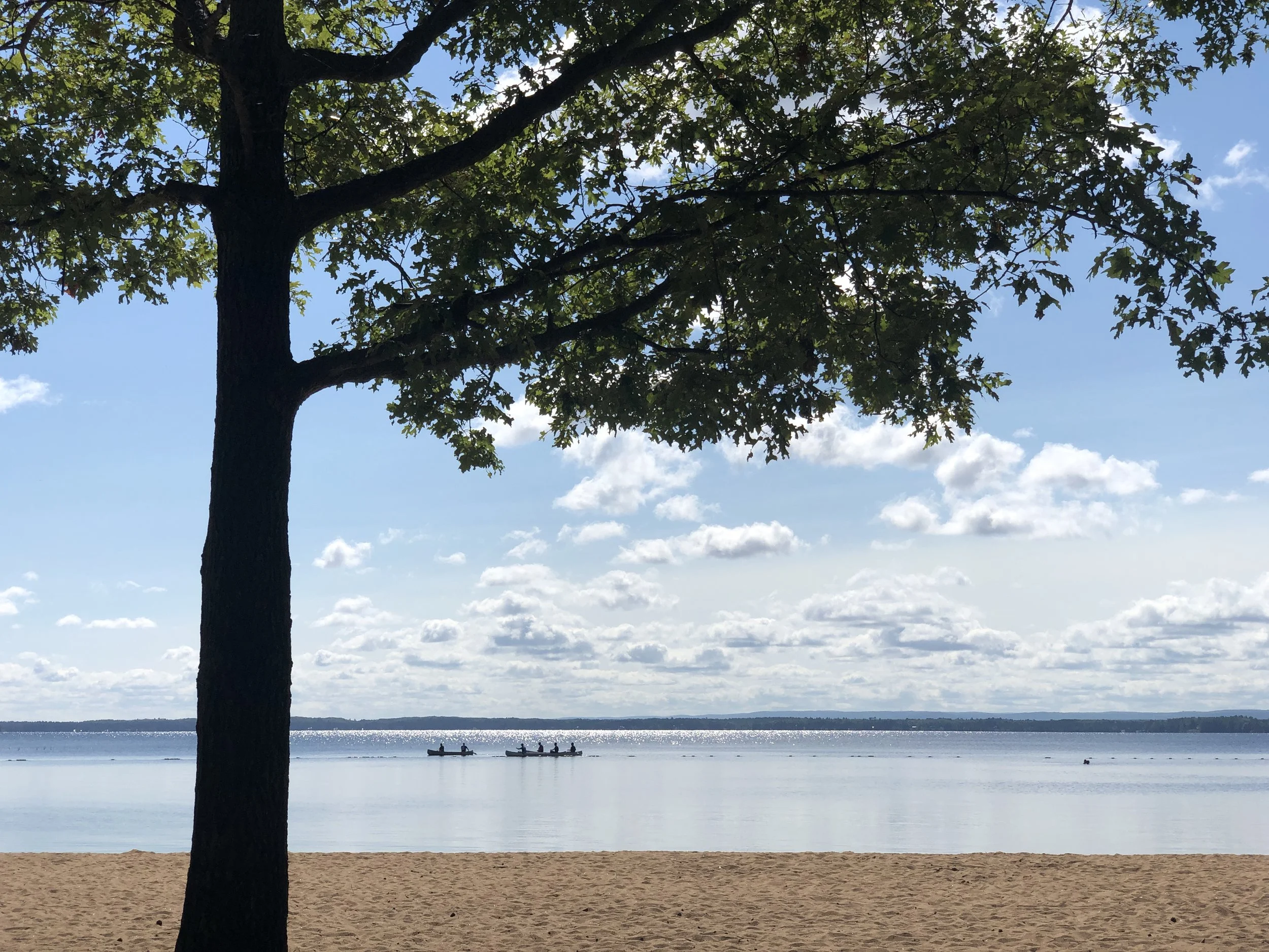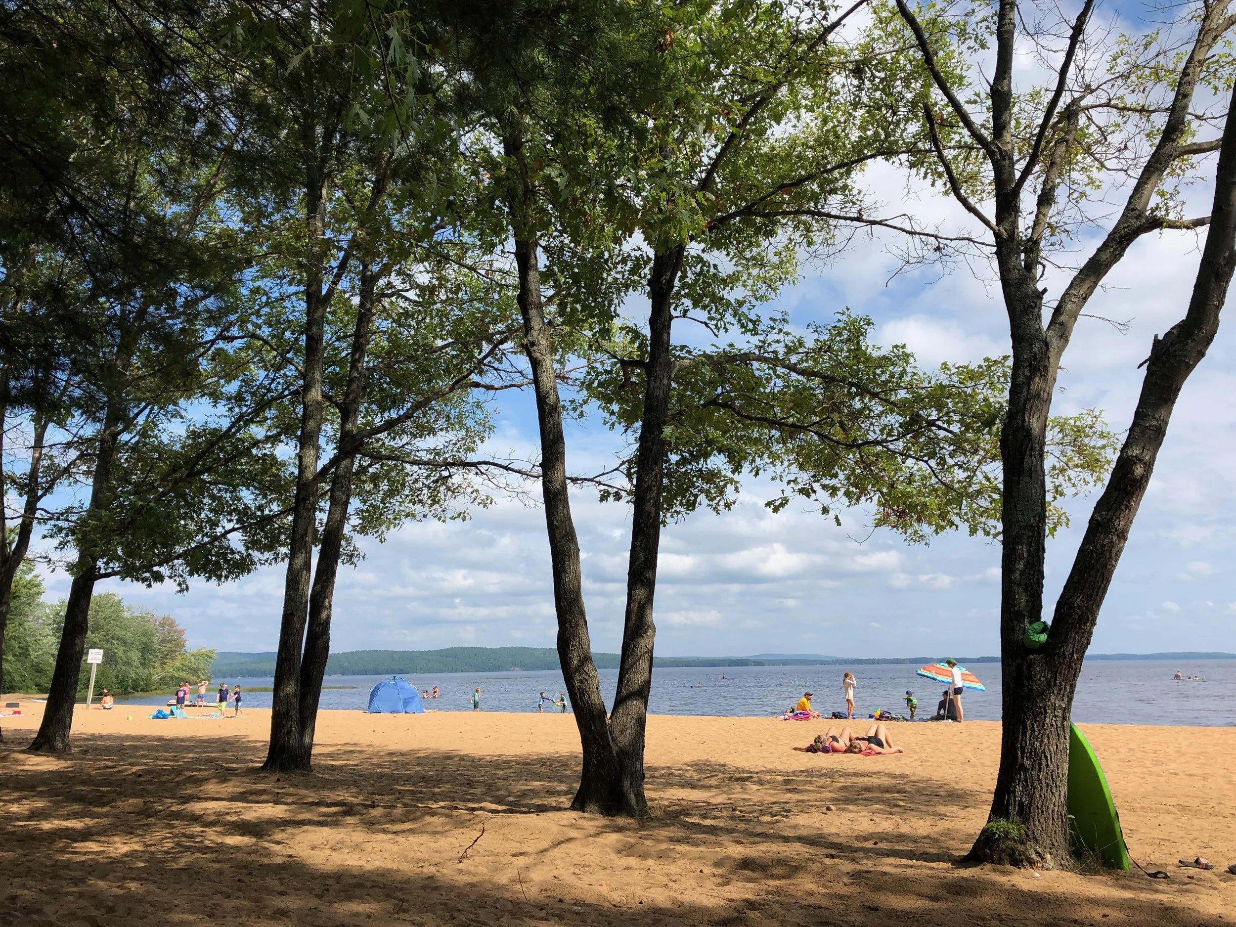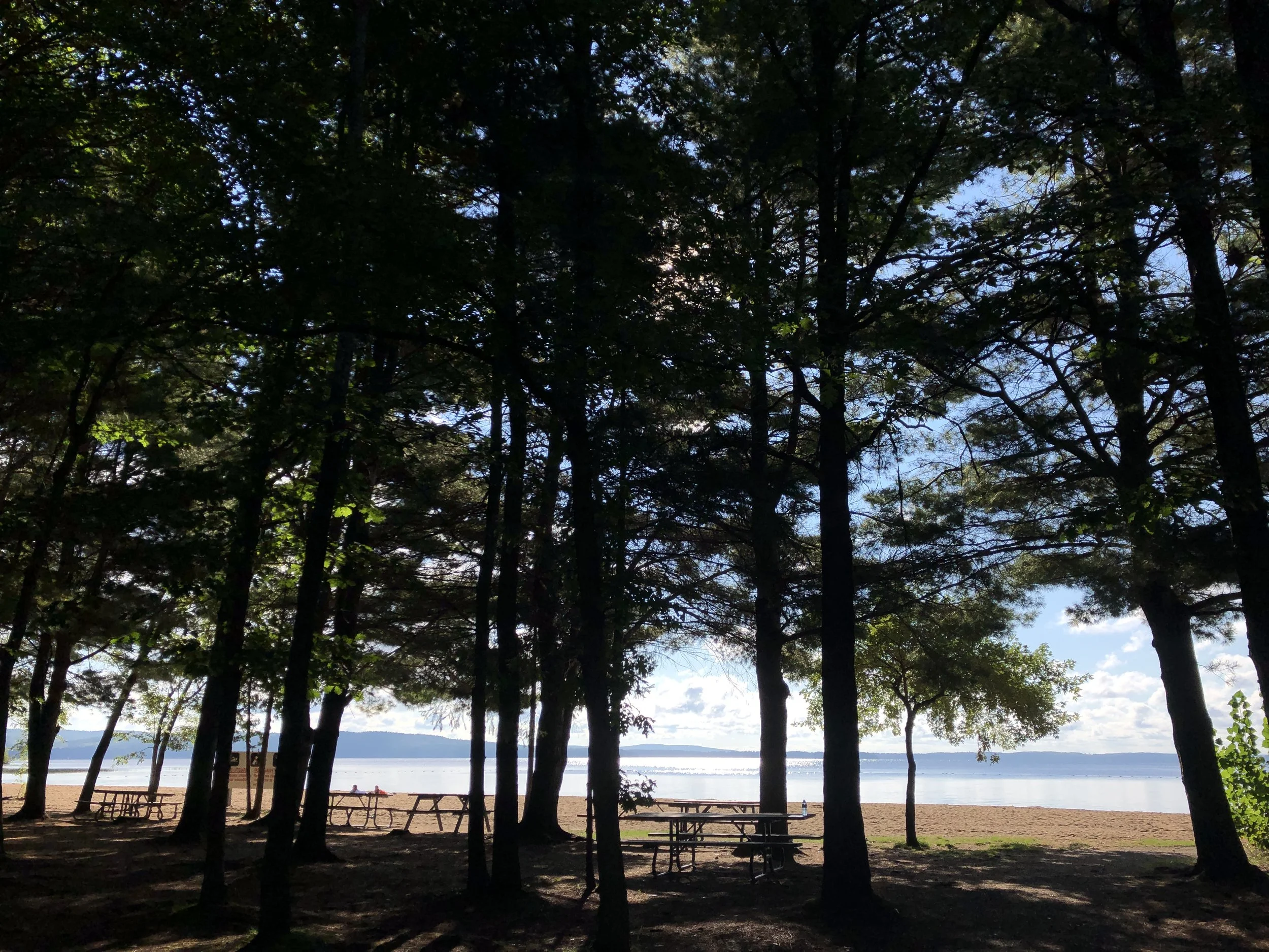 I took another walk around the campground and ended up at the beach. It’s so pretty! And huge. The water is shallow for quite a ways out, so it never felt crowded. We returned to the beach later on with Daisy and took turns swimming. The water was the exact right temperature. Daisy had a huge fit when Chris left to go for a swim! It was hard to calm her down, but I finally did. Lesson learned, it would have been MUCH easier if I’d had treats with me.