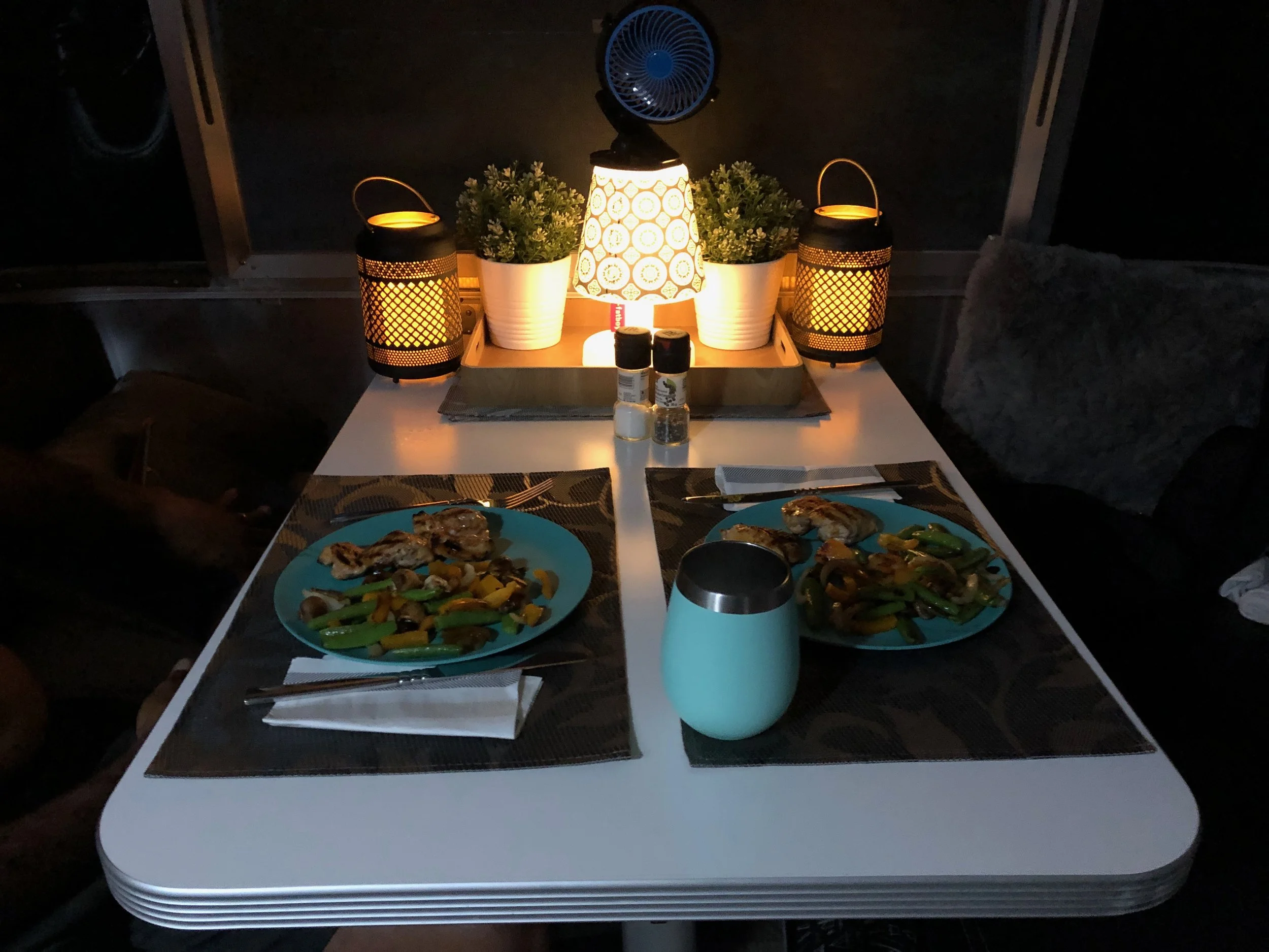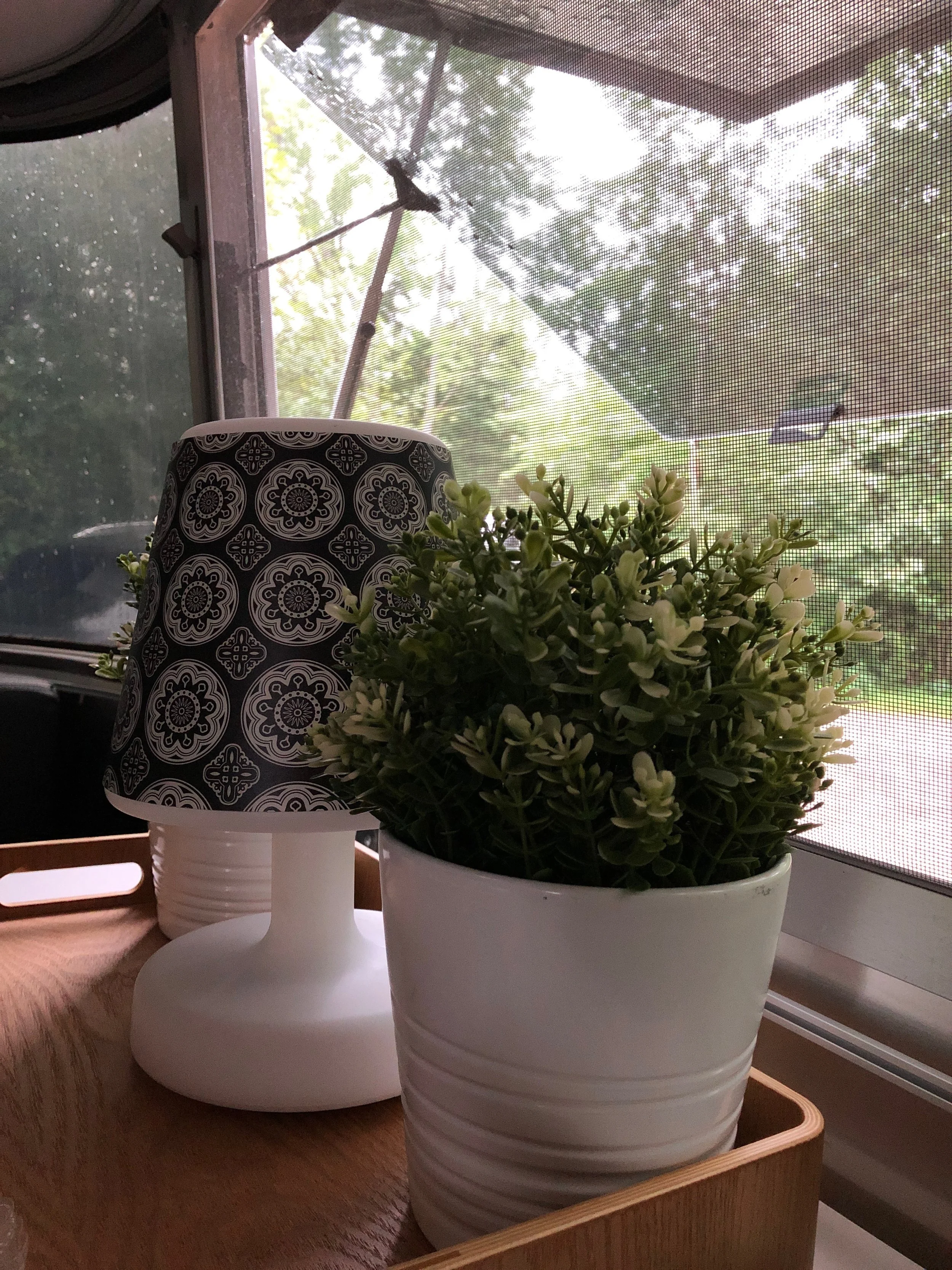 Other: I wanted to read at night and the overhead light is SO jarring. We have a Fat Boy lamp that’s the right level of light, but nowhere to place it! Our friends suggested using the gel film in the lights, so we’ll try that! We still need to work on our fan solutions…
