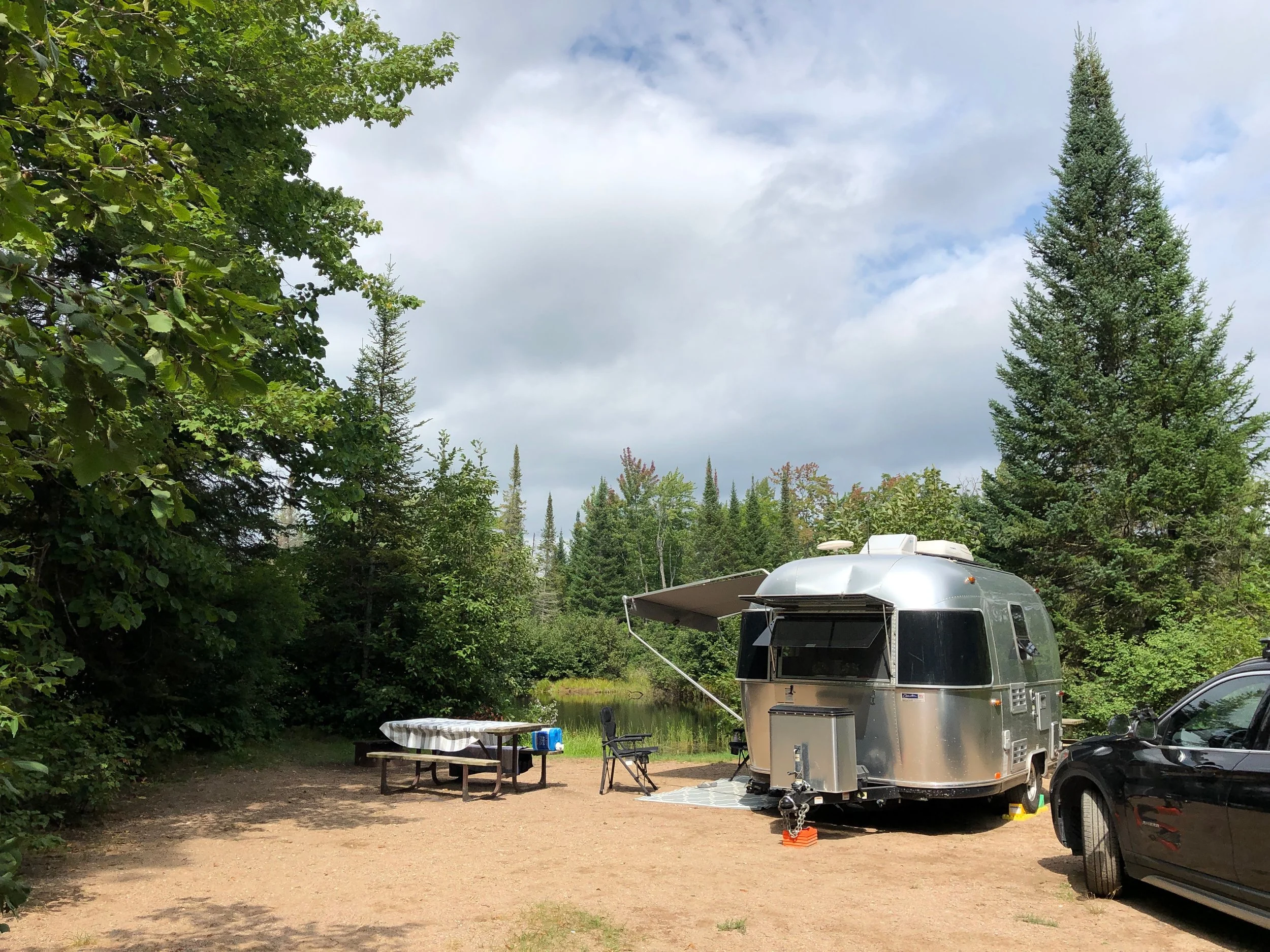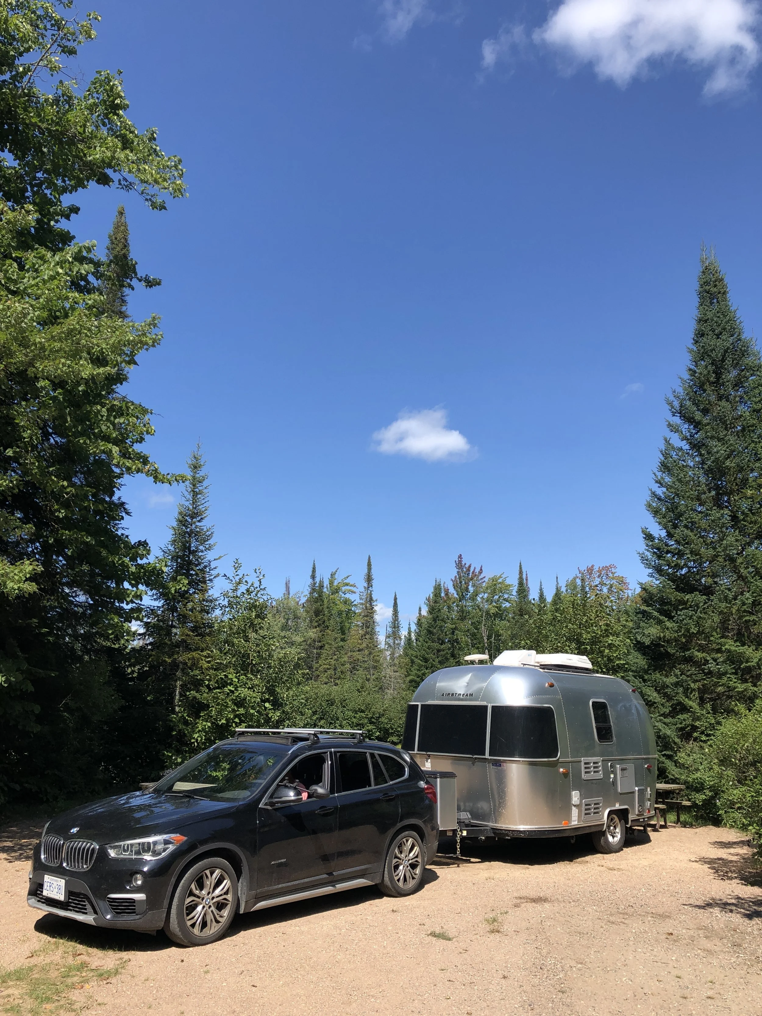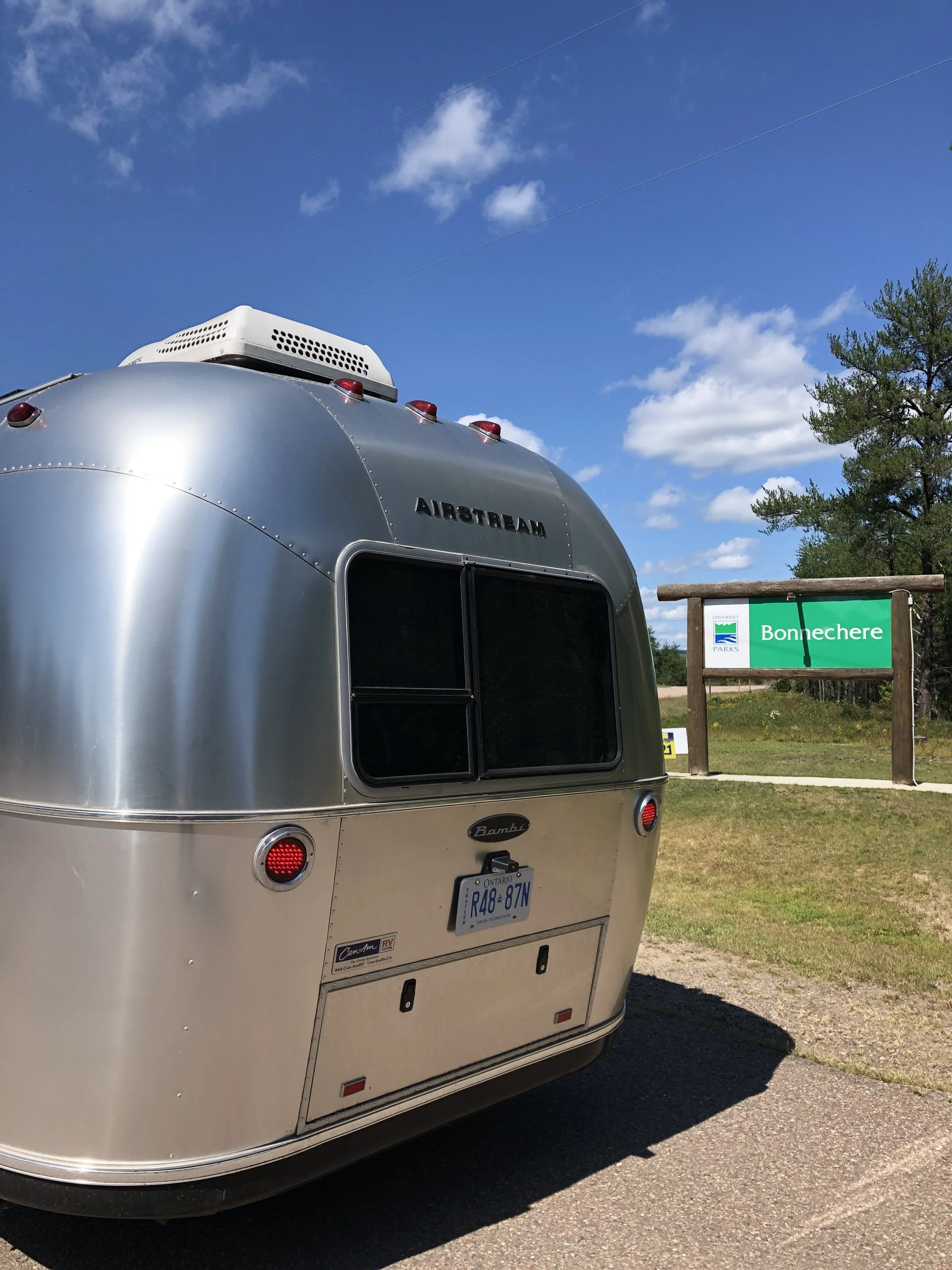 Moving always takes more time than anyone wants it to, so we only started to hitch up at 3 pm. We were on the road by 4:30 pm, but needed to stop for poop bags (Daisy) and gas. Just after turning off highway 17 to Bonnechere, we passed a long Airstream, flicked our lights and waved. If you have an Airstream, you’ll understand how exciting it is to spot another one in the wild!
